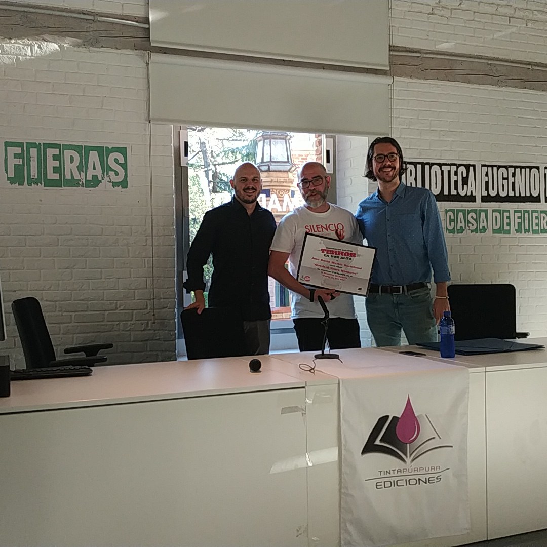 No obstante, el evento no fue lo único que celebrar ayer. Nuestra ilusión se multiplicó cuando el equipo de De Viva Voz, Carlos Tolmo y Raúl García, anunció el ganador de su concurso Terror en Voz Alta. Para quienes no lo sepáis aún, dicho concurso consiste en escribir relatos de terror de entre 1000 y 1500 palabras con el objetivo de ser dramatizados. Los finalistas tuvieron la oportunidad de formar parte del programa de la nueva temporada De Viva Voz, lo cual es, sin duda, una oportunidad magnífica para todo escritor. Asimismo, podrían publicar sus textos en el compendio físico de la próxima gira con su versión audiorrelato, entre otros muchos premios.
